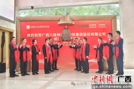 中新网广西新闻9月12日电 (蒙鸣明)广西八桂种苗集团新三板挂牌仪式11日在北京金融街全国中小企业股份转让系统有限责任公司举行。