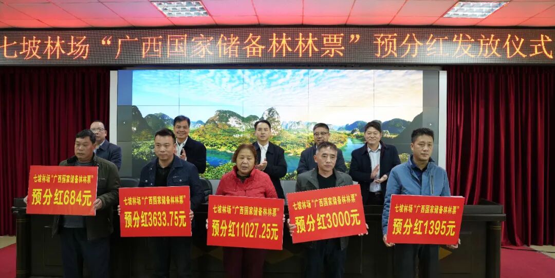 2024年12月11日,河池市金城江区5位林农首次拿到“广西国家储备林林票”预分红现金,脸上洋溢着丰收的喜悦。2024年,“广西国家储备林林票”制度改革试点新增合作造林面积3.3万亩,发行林票面额6496万元,首批预分红顺利发放。